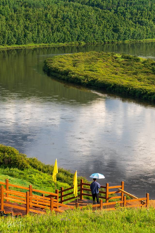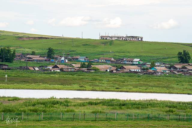 这天早晨,早早醒来,我们前往距离黑头山镇46公里处的186彩带河,它位于陈巴尔虎旗边防公路186界碑处,额尔古纳河在这儿河道蜿蜒曲折,弯弯绕绕,站在观景台上直接看着对面俄罗斯的村镇。