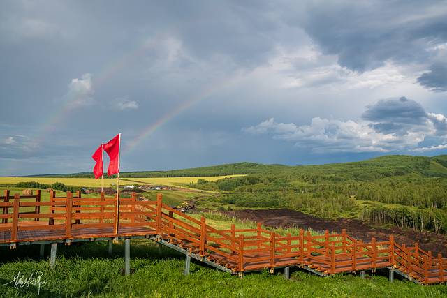 奥洛契庄园是“农旅融合”的旅游项目,在边境室韦小镇5公里远的地方,最吸引人的大概是号称最大的农作物太极图,当然通常是看不到的,因为太大了,边境线不能使用无人机的我,就只能平面看看眼前的油菜花和麦子了。