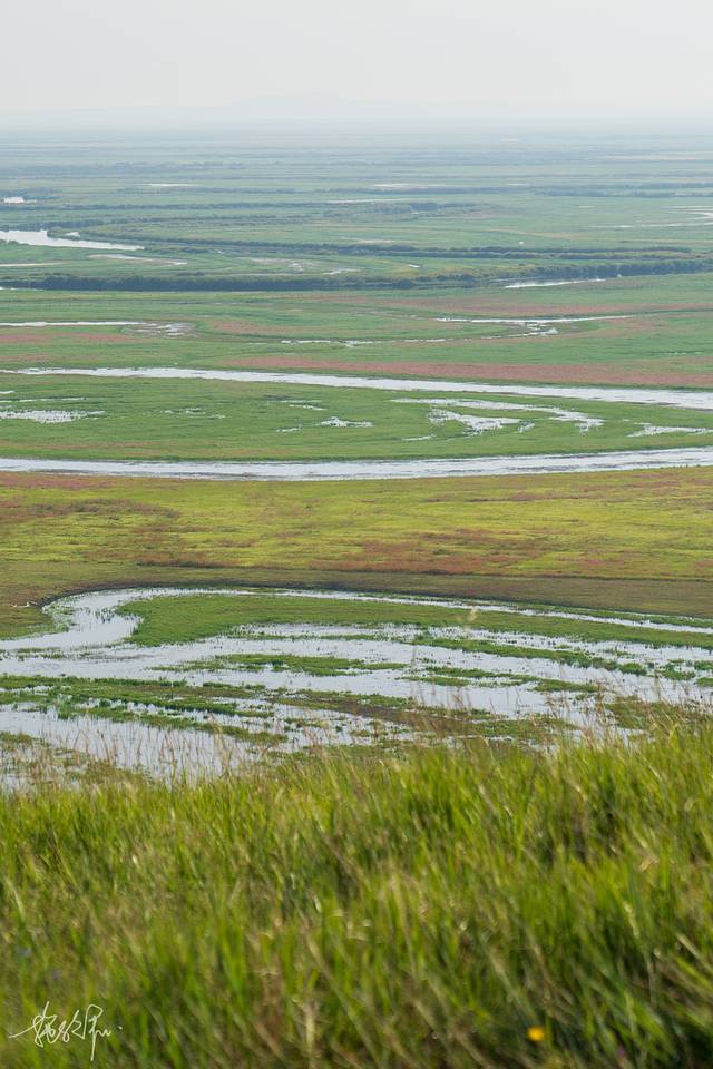 顺着木栈道来到观景台,我们眼前这一片像湿地一样的景观,期间河流呈现出九曲十八弯,优柔之美淋漓尽致。相信日落时分,晚霞映衬在这样的河面湿地上应该是很美的。