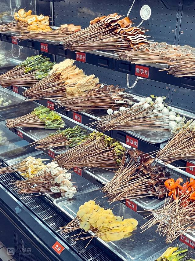 🥡菜品想吃什么在冰柜里面自己拿,很新鲜,也很入味,每一桌会给一个红油锅底,把菜品放进去,基本上每一种菜来两串,都很不错,是一次很不错的体验!还会再去!