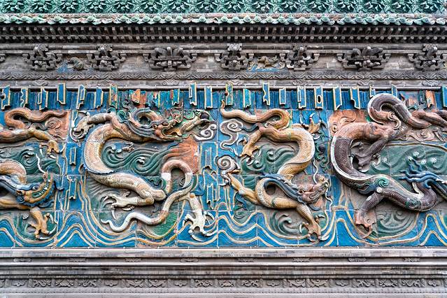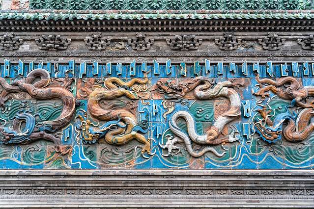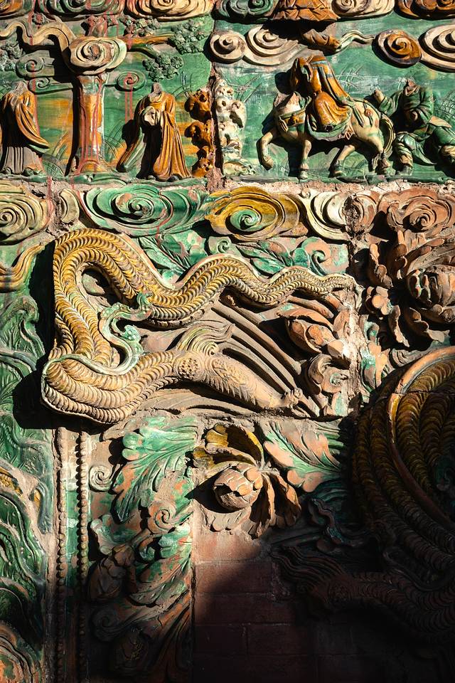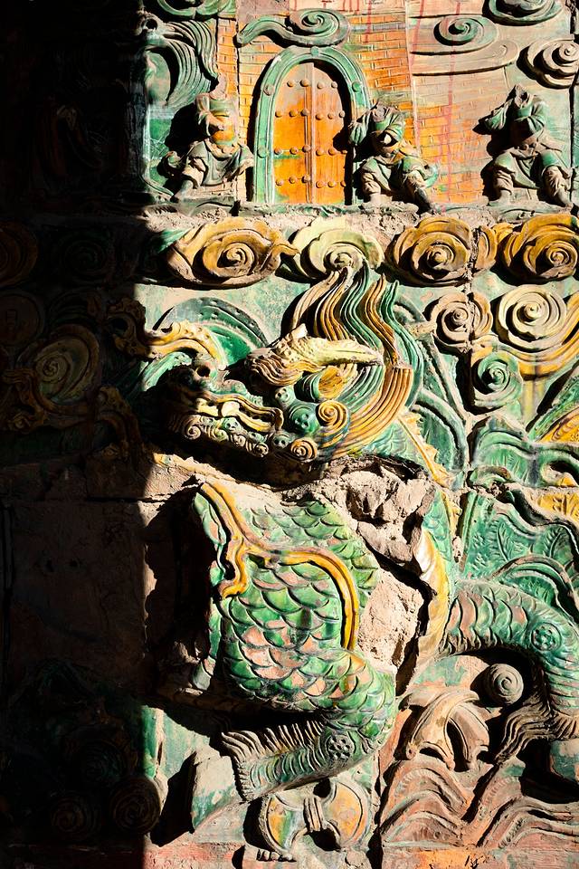 如今,这座庙最大的看点是两块巨大的琉璃龙凤壁。它们来自明正德5-8年,距今已有500多年历史。精雕细刻,熠熠生辉,虽然名气不大,但艺术水平很高。