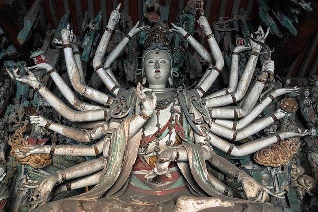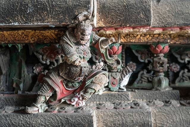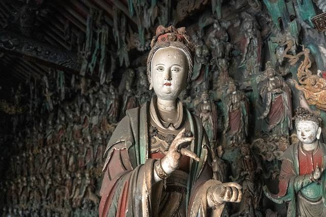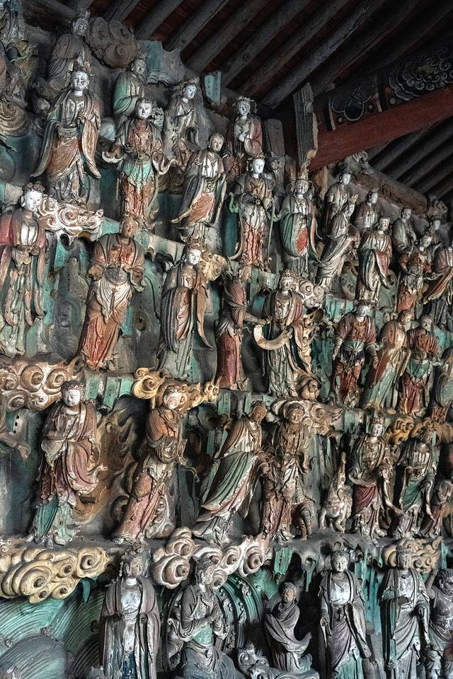 (关于这千佛殿,还有个隐藏的小秘密。有人说,千佛殿彩塑只有五百余尊,名不副实。然而仔细观看,千佛殿北壁下方两侧开有小门,还有佛正源源不断地“走”进来。还未得进入的佛有多少,谁知晓呢!叫它千佛殿,不为过吧?)