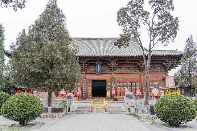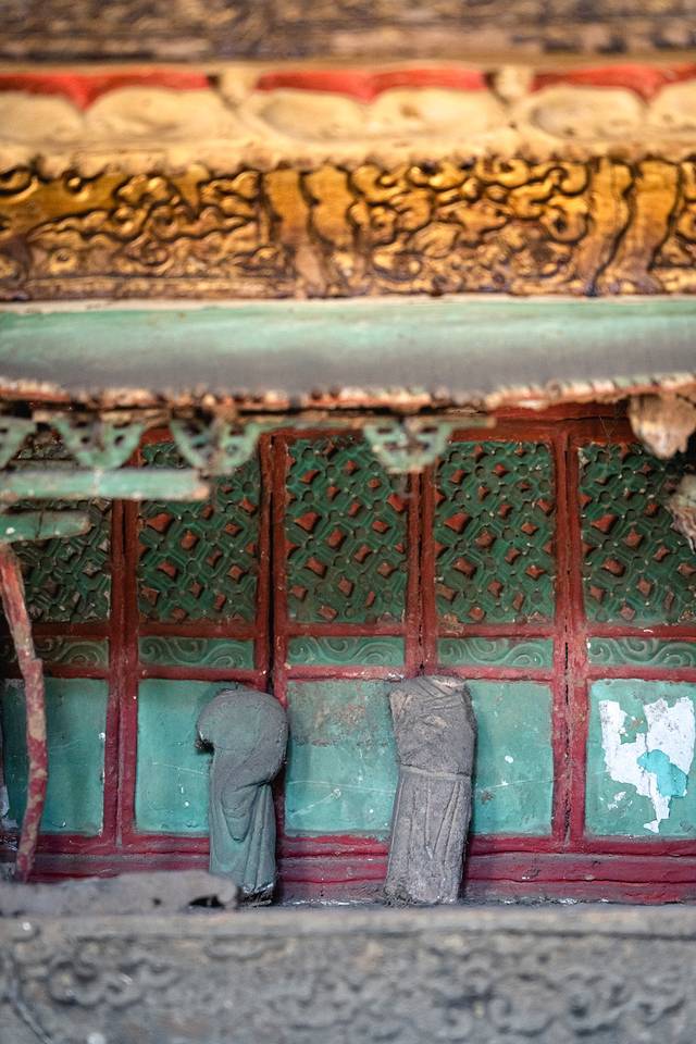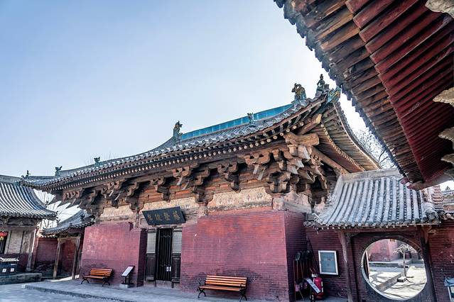 这座大殿的年纪,如今看来实在是很老了,比之佛光南禅二寺亦晚不多久,其中彩塑自不必说。中华向来敬重长者,尊老之为传统,无需言即可付之行,却未曾给予这座古老寺庙以足够的敬重。咫尺之遥的平遥古城,整体多为明清,却享受了万宠于一身的钟情,这实在有些不合逻辑。