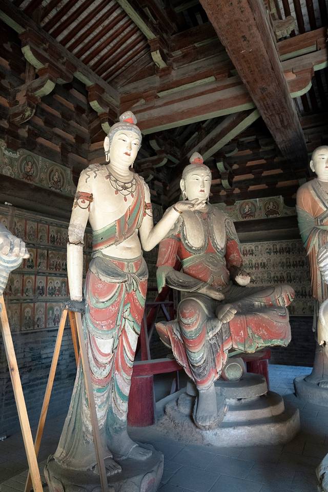 这里主要是有明代的七尊彩塑,艺术价值可以说不亚于镇国寺双林寺。明代的彩塑艺术是相当精美的,它的造型、风格,都是现代人复制不出来的。