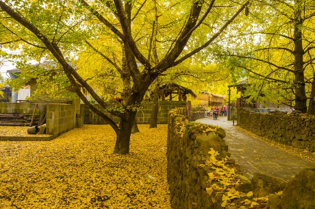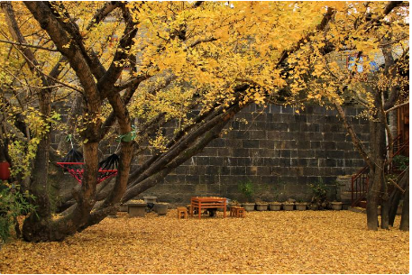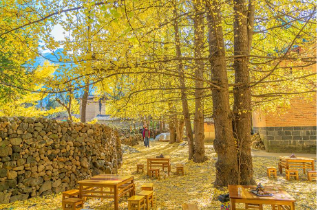 从腾冲县城驱车40余公里,就到了银杏村——固东镇。江东村银杏除具有古老和天然连片等特色外,还有一个特点就是“村在林中,林在村中”相互依托。村民的房屋就错落有致地分布在空地的四周,在房前屋后,到处都有大大小小的银杏树,到了古银杏村的感觉就是“满地的黄金!
