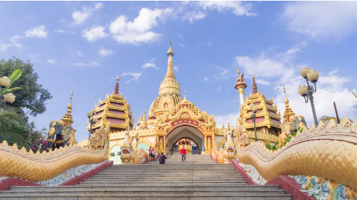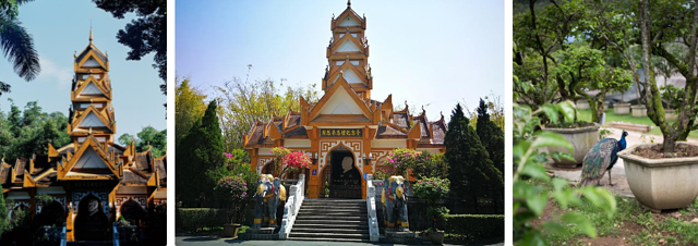 出发游览【勐焕大金塔】游览时间约50分钟,勐焕大金塔座落在芒市东南部海拔一千零七十九点六米的雷崖让山顶。传说“释加牟尼”生前转世为金鸡时曾生活于此地,佛涅槃后数百年,佛教弟子“召罕大”为传播佛祖教义亲临此山修炼,为“召罕大”有个修练的好环境,野草和荆棘全部让开,故称为雷牙让山,意为野草让开的地方,尔后在此山建一佛塔,自古以来是人们公认的佛教圣地之一
