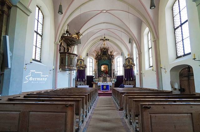 圣塞巴斯蒂安教堂Pfarrkiche St.Sebastian是拉姆绍小镇上最著名的建筑,建于1512年,只要驶入这个小镇,很难不去注意到它。