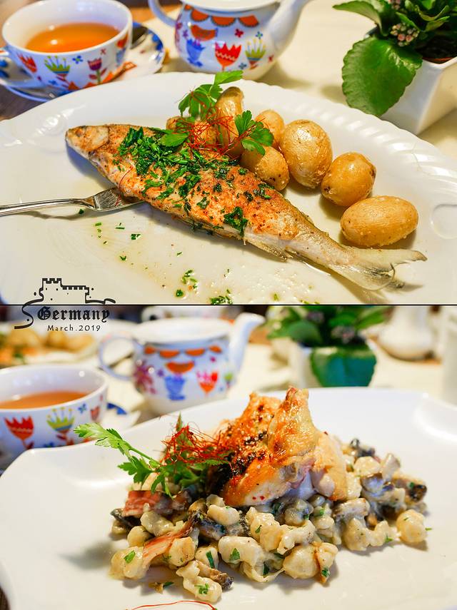 现在的气温还不能在户外用餐,餐厅是典型的德国乡村风格