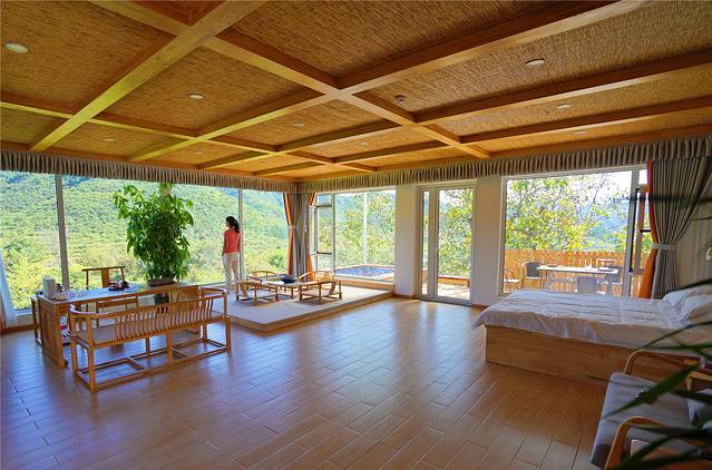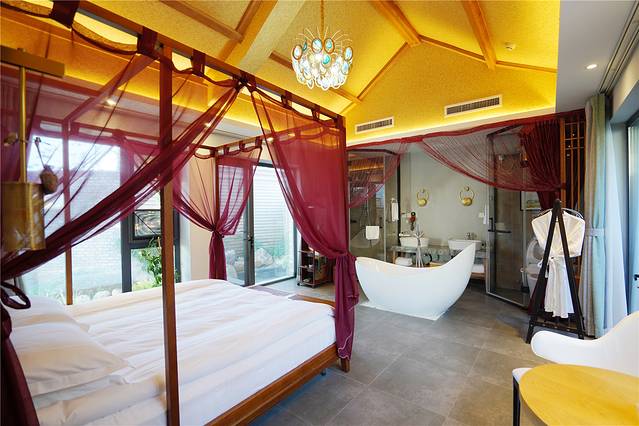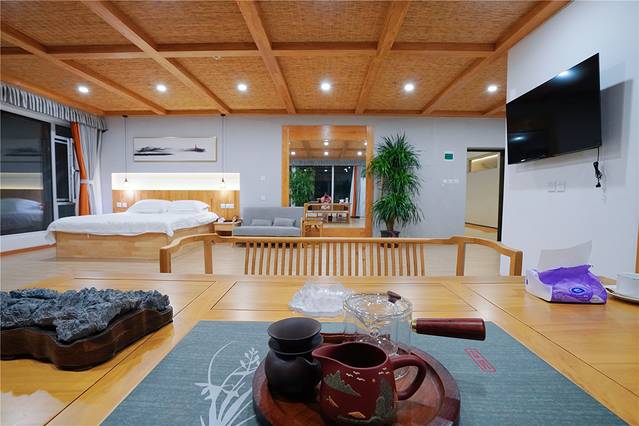 这是一个藏在山中的精致民宿,每一个房间的布置设计都很有特色,我们选了修心大床房,房间非常大,一进去就让人眼前一亮,赏景不要太美哦!