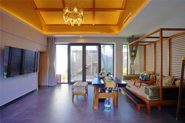 有五个大房间,每个房间都带私汤,主卧还自带会客室。2个院落,2个观景台,1间茶室,1间书轩,1间餐厅+吧台,能住10个人。