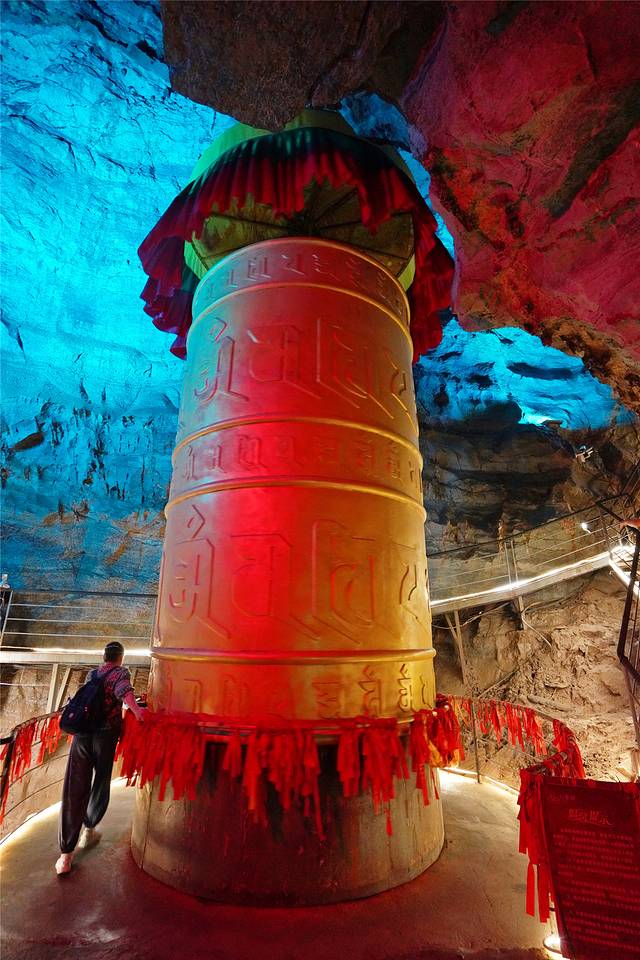 主要景观有:地下长城、滴水观音、显圣龙潭、擎天一柱、莲花浮桥、活佛济公、伏虎、天池、天锅、八仙过海、飞龙在天,洞壁影院,罗汉长廊,转经轮,无限8和巨大的褶皱8。