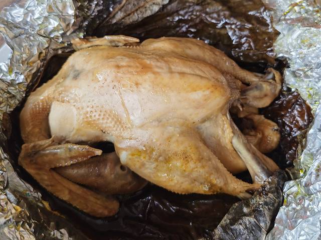 天台 山的公路,十分陡峭,好在是刚刚铺设的柏油路面,路况非常好,来到停车场已经下午五点半,刚好看到门口有卖叫花鸡,就买了一只,以补充登山所需的能量。剥开外面的泥巴,一股香气扑鼻而来,一阵大快朵颐后,感觉浑身是劲,开始上山。