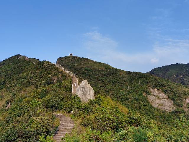 从这里登上 天台 山的峰顶,大概需要半个小时,全程都是登山石阶,前半段在密林中穿行,到了万寿塔后,直行就是 天台 寺,小 天台 就位于寺庙前,继续往前就能进入五指峰。万寿塔的旁边还有一条石阶,直 通山 顶,那里就是大 天台 。
