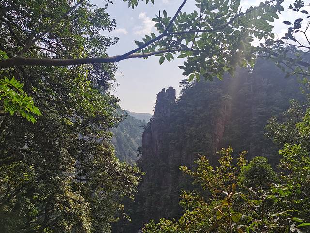 五指峰堪称莽山的精华,所以被辟为独立的景区,它拥有全国独创的无障碍观光 通道 。根据售票处工作人员的建议,本来计划从将军寨出来,先游五指峰,然后到大 天台 看日落。但从将军寨出来后,已经快下午五点,时间不够,于是只能临时改变计划,第二天早上再进五指峰,今天先上山欣赏大 天台 的落日。 天台 山是森林公园的三个景点之一,山上的大、小 天台 ,是俯瞰五指峰的最佳位置。
