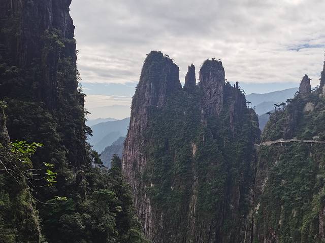 五指峰全程9公里,除了切换上下两层栈道需要走台阶,大部分都为平路,如果去掉上下山花费的时间,两个小时足以完成,搭乘电梯当然还会更快一些。切换上下栈道的台阶十分陡峭,体力不支者建议还是坐电梯。