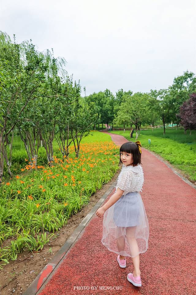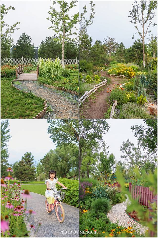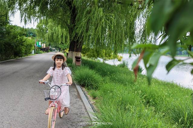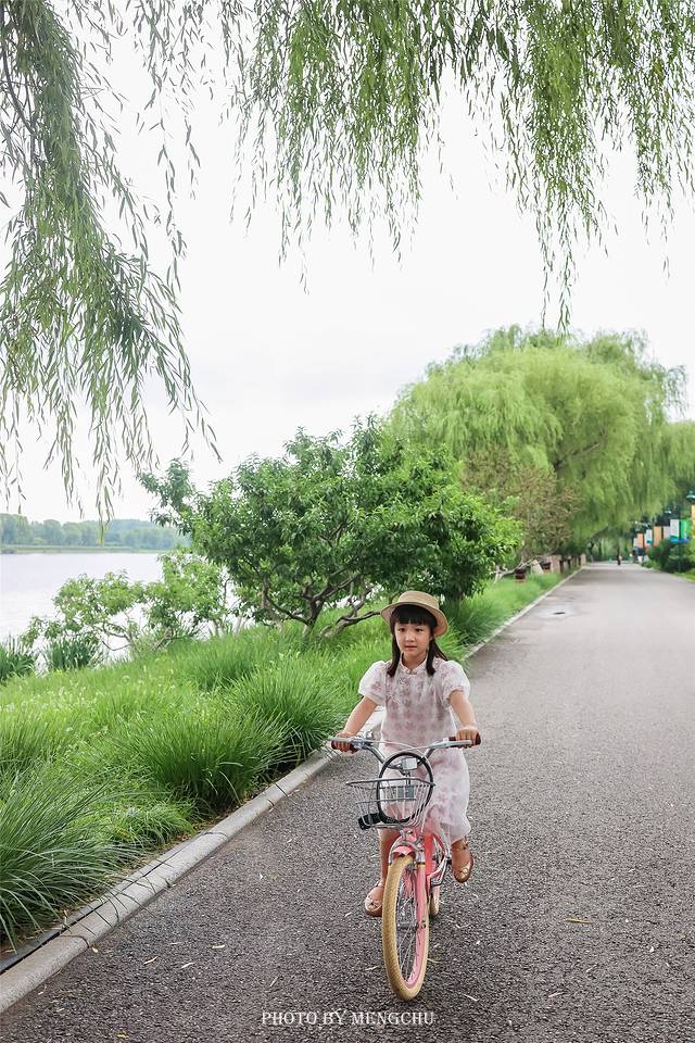 环绕着公园建有5.5公里的健走步道,呈花朵形状贯穿全园,8米宽的沥青路面骑行道,3米宽的塑胶路面漫步道,沿线还种植了成排的白蜡和银杏,绿荫遮日,特别适合刚学会骑脚踏车的小丫头,没有扰人的汽车和电动车,也不必担心拥挤的人群,可以自由自在的享受骑行乐趣。