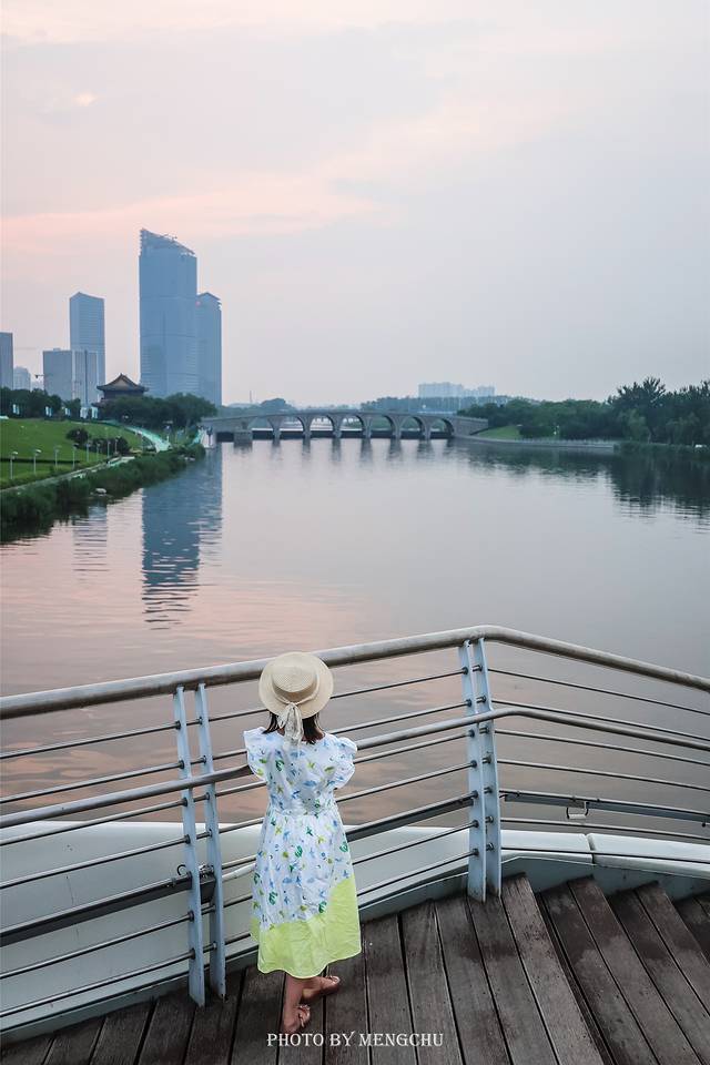 波光粼粼的河面之上横跨着六座大桥,每一座都风格迥异各有故事。但如果要问哪一座桥最上镜?在我看来,当然是造型优美的千荷泻露桥。