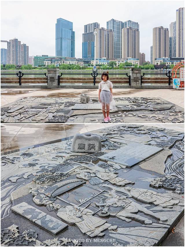 作为历史上京杭大运河最北端的漕运古镇,南来北往的船队和旅客曾在这里相互交织川流不息,运河两岸的码头、粮仓、商家、酒肆、客店一应俱全;由运河带动起来的通州,一度极其繁荣兴旺。站在河岸,跟小丫头讲述着运河变迁的沧海桑田,曾经的茅草棚屋变成拔地而起的高楼广厦,也让小朋友对城市历史产生了浓厚的兴趣。