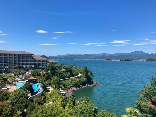 酒店早餐品种很丰富,坐在餐厅望着湖,微风拂过,很舒服,坐下就不想起来了,酒店内有慢行步道,湖边散步也是不错的,中西餐厅各一个,室外有3个泳池(孩子戏水区和无边泳池)一楼是泳池房,室内有健身房和游泳池。我们办完入住就没出去过,太疲惫了,午饭在酒店吃了个有机鱼头汤(千岛湖的鱼头店太多了 )睡个午觉起床在湖边走走,晚上室外泳池游泳,一天就在酒店躺过去了。