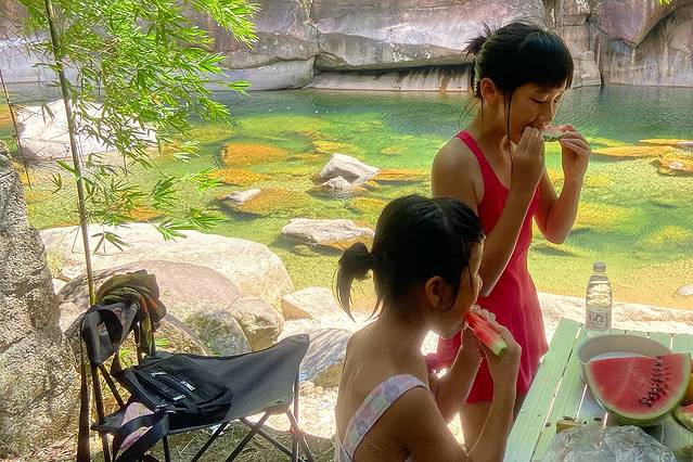 中午&下午:溪里泡水