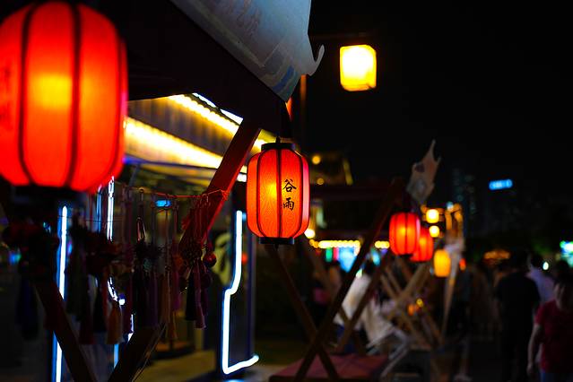 来 淮安 最不能错过的莫过于傍晚的时候来到里运河文化长廊看夜景了。傍晚的里运河畔红红的灯笼亮着,给这里增添了不少喜庆。沿着河畔走去,对面是御码头美食街,傍晚的时候这里很热闹,当地人喜欢到这里来吃饭。也许这也是 淮安 夜生活的一部分吧,我来的这几天正好是非遗展,可以说是人山人海,各种美食小吃的都有。如果说每一座城市有一个地方让人念念不忘的,这里应该就是了。来 淮安 旅游,里运河文化长廊景区的夜景不能错过了。