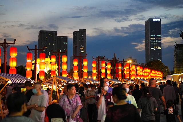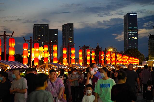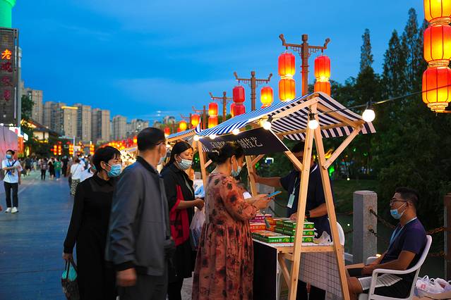 华灯初上,国师塔的灯亮起,河畔的景观灯全都亮起来了,里运河构成了一幅美丽的画卷呈现在眼前,美不胜收。一到晚上前来观看非遗展的游客一下子多了起来,一个个展柜前都围满了人呀,可以说是人山人海,今年的非遗展美食展柜特别多,在里运河岸的御码头运河文化美食街区一到晚上就人山人海, 一边慢慢观看非遗展, 一边品尝非遗特色的美食,非常的惬意。 淮安 ,一个让人难忘的夜晚。