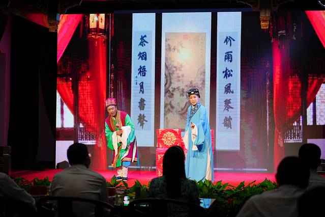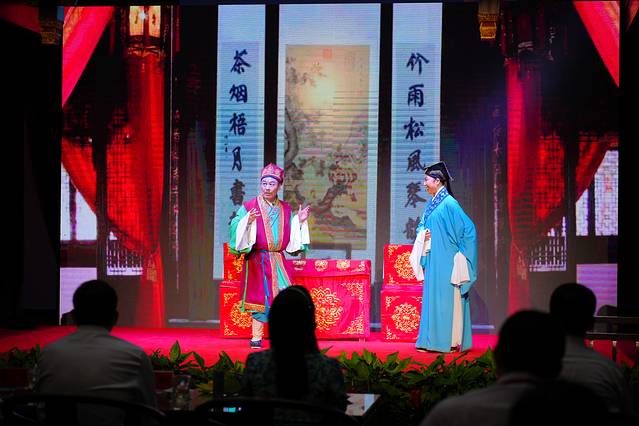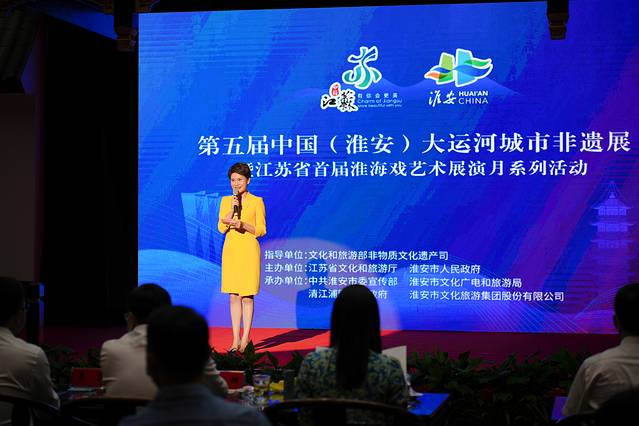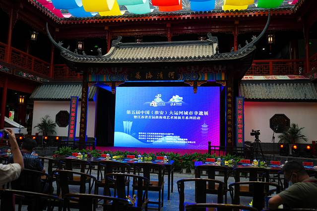 年年非遗展,今年更精彩。 淮安 流光溢彩的运河美景,热闹非凡, 一场非遗盛宴在这里开启--第五届 中国 ( 淮安 )大运河城市非遗展暨 江苏 省首届淮海戏艺术展演月璀璨启幕,精彩的戏曲展演轮番登场,大运河沿线8省90余项非遗项目集中亮相,在中秋佳节之际,共同点燃了 淮安 里运河之秋。这次非遗展是在 淮安 戏曲博物馆里举行的。我在现场观看了开幕式,精彩的淮海戏演出赢得在场观众的阵阵掌声。