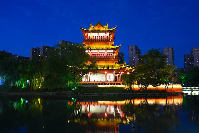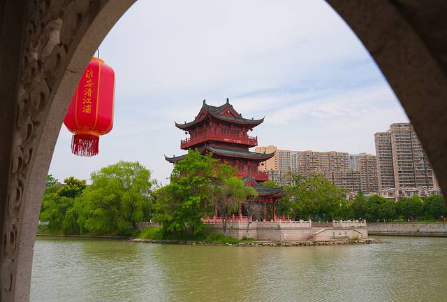 清江浦楼是 新建 的楼和老清江浦楼完全不一样,现在新的清江浦楼与中洲城市地段空间相呼应、协调,成为东西往来水陆视线焦点。新清江浦楼已成为 淮安 的一大地标建筑。在蓝天白云下清江浦楼显得格外的好看,每当傍晚的时候灯光亮起,这里灯光璀璨,流光溢彩景色迷人,这里已成了 淮安 人傍晚散步休闲的好地方。