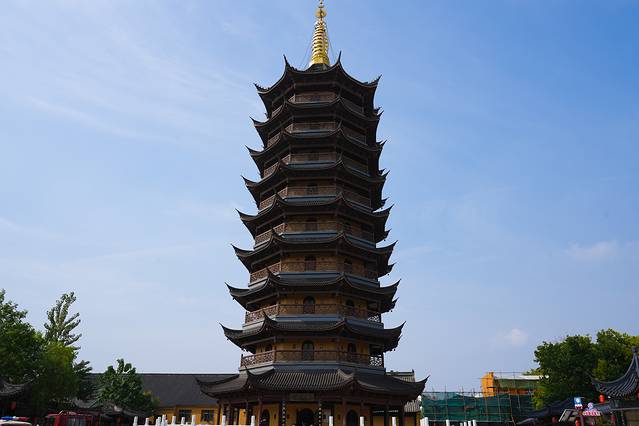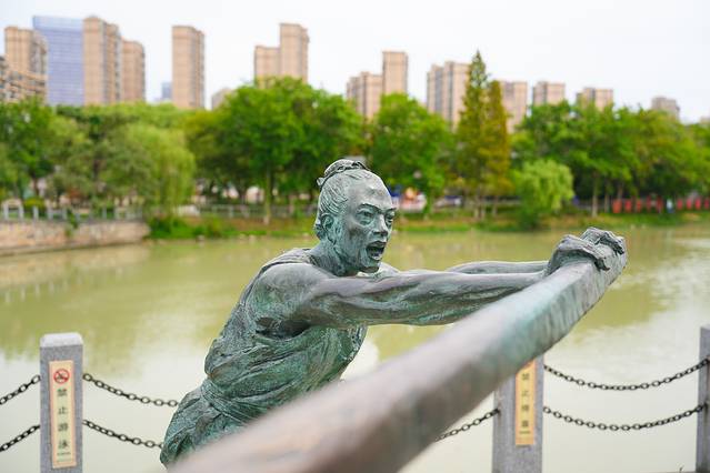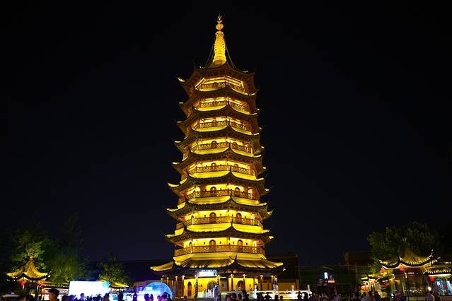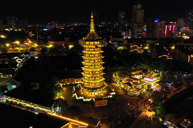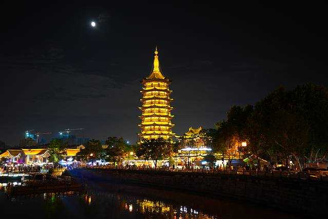 再沿着河畔走到对岸,路两边的建筑古色古香的,国师塔前俯川流不息的里运河,背倚香火旺盛的慈云寺,九层八面,庄严雄伟,复建的国师塔已然矗立在里运河清江浦南岸,成为里运河文化长廊起始段的一景。而玉琳国师与清江浦国师塔的传奇故事,则赋予了这座宝塔浓郁的人文色彩。
