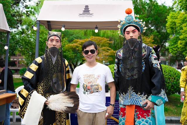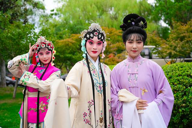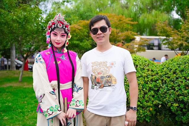场外引人垂涎的运河美食还有曲韵悠长的非遗戏曲吸引了众多游客前来打卡。大运河是流动的文化,是流淌千年的瑰丽诗篇。一首首动听的戏曲旋律唱响今晚淮 江安 里运河畔。开幕式过后就就到场外观看了节目,此次非遗还是 江苏 省首届淮海戏艺术展演月,在场外看到有好多化着戏妆的演员正在游园。一个个漂亮的戏曲妆容,穿着唱戏的戏服走在里运河景区里和游客互动。看到此景当然不能错过和她们合个影了。