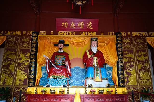 就在运河畔一位叫陈瑄的名臣,是一位著名的治水名臣,走进陈潘二公祠大堂,有门厅、大堂、二堂、东西厢房、走廊、照壁等。主体建筑为陈潘二公祠大堂,大堂与门厅两侧绿化带内,立有明代的两方圣谕祭祀碑。祠内以场景、影像、图片、文字等展示治水名臣陈瑄、潘季驯的生平以及他们在 淮安 的治水业绩。祠堂两侧回廊内,以镌刻瓷盘肖像及文字介绍的方式,集中展示54位大运河历史名人。