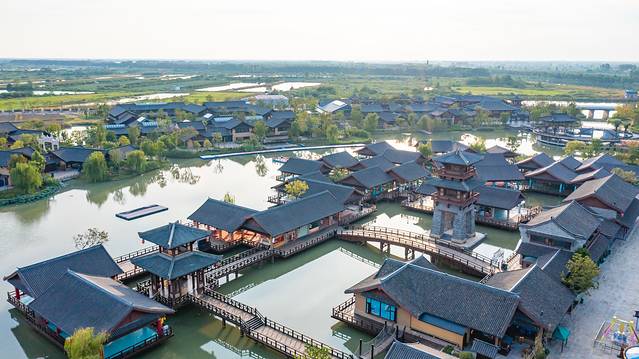 这次自驾前往位于仙桃市排湖风景区的沔阳小镇,从武汉出发整个高速行程只用时约1小时30分钟。来到景区远远望去这里是以荆楚派的建筑风格,具有沔阳文化特色和江汉水乡风情的小镇。