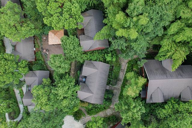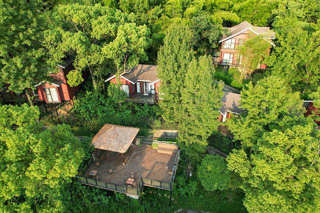 民宿的客房是九栋风格不同的独立式山体别墅,树木参天,像极了绿野仙踪的梦境。