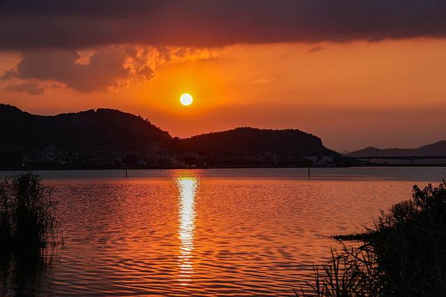 那幅可遇不可求的壮景,应了这句话,日落奔赴山海,晚霞是最浪漫的告白。