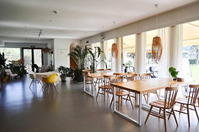 比起酒店传统的前台,一楼的大厅更像是个多功能厅,除了具备接待功能之外,同时也是个森系的咖啡馆。