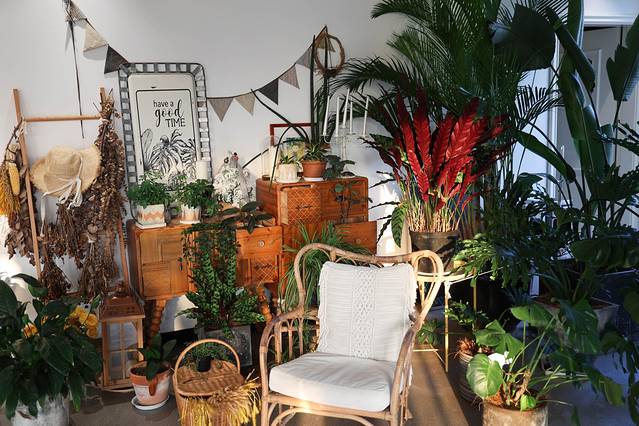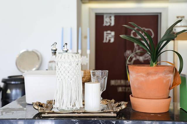 大厅一角是精心布置的梦幻森系打卡角,复古的木柜,波西米亚的躺椅,满足了爱美女生的少女心。