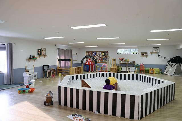 甚至整个大厅二楼都是小朋友大爱的游乐场,有海洋球、印第安帐篷、乐高积木拼搭区、绘本区、手工绘画区等等。