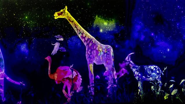 恍如绿野仙踪,还可以在互动区手绘森林动物投影到光影画面中