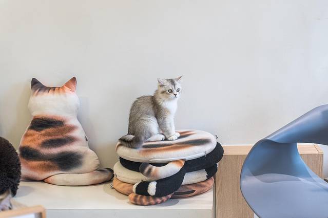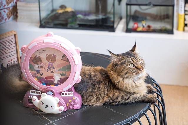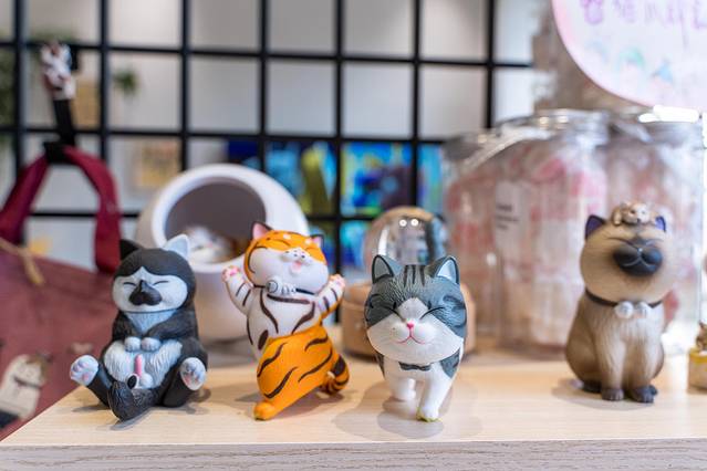 可以陪您玩耍嬉戏,馆内还提供电玩、小型桌游等娱乐设备,陈列了近百件猫咪主题的文创商品。