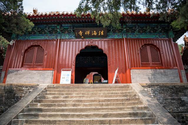走进法海寺,清幽的古寺,山中微风吹来,吹走了暑气,著名的明代壁画真迹依然保留在这座黄琉璃瓦庑殿顶的大殿墙上。法海寺的壁画被誉为明代壁画之最,与 敦煌 、永乐宫壁画相比各有千秋,可与 欧洲 文艺复兴时期的壁画相媲美。为保护文物,大雄宝殿内的壁画真迹参观严禁拍照、录音、录像,严禁携带食品、饮料等。寺内设有储物柜,可供存放背包等随身物品。