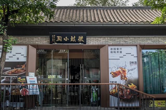 从东入口进入200米,映入眼帘的是一家特色连锁餐饮品牌店徽镇小厨。曾经的杂院,如今摇身一变成为秀美的中式庭院,这里通过庭院化布景,打造新中式意境,成为“特色游园餐厅”,一边品美食,一边享美景。