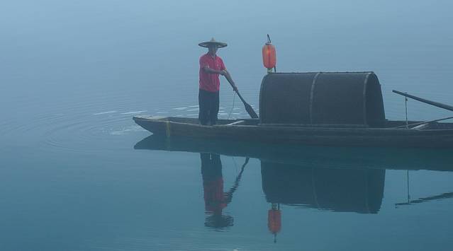 游玩东江湖最主要的体验当然是去看老爷爷捕鱼,特别是早上晨雾起来之后,老人驾驶着小木船穿行于雾中,真的是如同仙境一般,让人分不清到底是在水上还是雾上,宛如仙境一般。