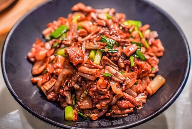 【老唐三下锅】三下锅是湖南地区的知名美食,是由三种主料做成的一种干锅,因为其原料多为肥肠、猪肚、牛肚、羊肚、猪蹄或猪头肉等选其中三样,所以你在不同的店吃三下锅也会发现原料不同,所以不要惊讶它就是这样。在张家界众多三下锅店当中,这家店算是比较知名的老字号了,位置也是非常好就在夜市街的路口,门头很大远远就能看到,店里装修古色古香的也很有特色,当然重点是味道好,食材很新鲜吃着口感一流,除了三下锅还有农家土猪肉、坛子肉、野菜粑粑都是必点美味,值得品尝一下。