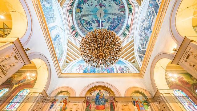 与陈旧的外墙相比,教堂内的壁画却非常的惊艳。