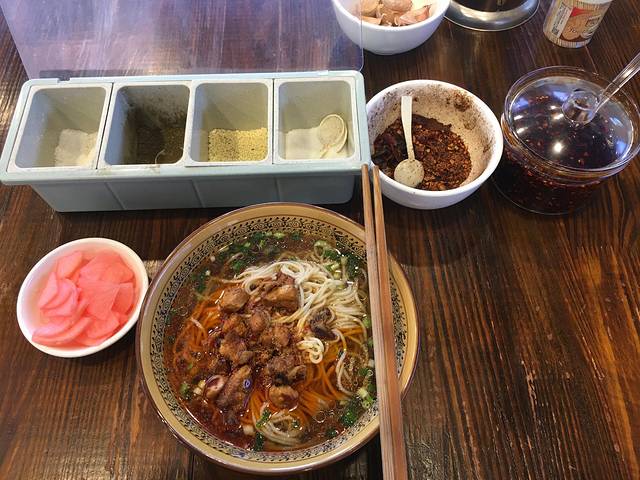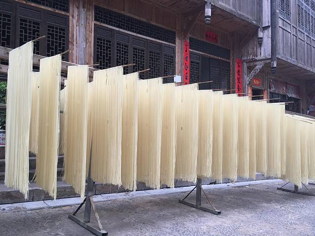 据说下司面条历经24道工艺,打磨擀制而成,面条劲道十足,可以配合鸡蛋、荞面、蓝莓、蔬菜等诸多原生态纯天然的配料,衍生出了不同口味。这碗丹寨斗鸡面,筋道爽滑的面条,再配上臊子,好吃,确实不容错过!