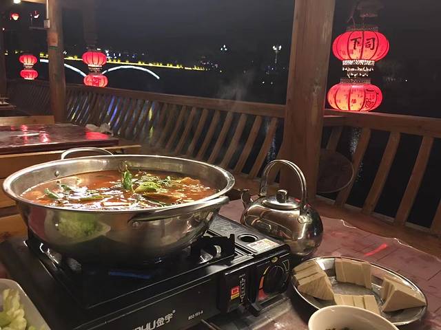 下司酸汤鱼是黔东南州的四大名菜之一,扬名省内外。所以来到望江酒楼吃酸汤鱼(当地人叫“黄骨鱼”为“角角鱼”,美团套餐80元)。一旁是古镇夜景,伴随着江风的吹拂,吸吮着酸辣爽口的角角鱼,岂不畅哉?