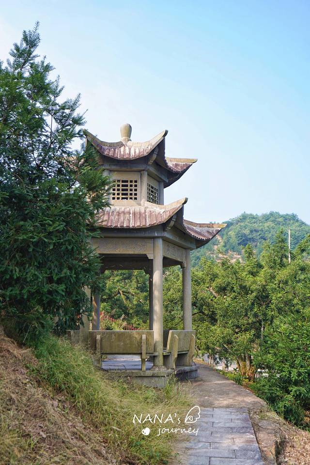 依着山脊盘山而上,我们来到了几乎山顶的地方,有一处凉亭,可见远处美景。路上遇到几个村民,都在这里采摘香榧,看时间快是到成熟的季节了!
