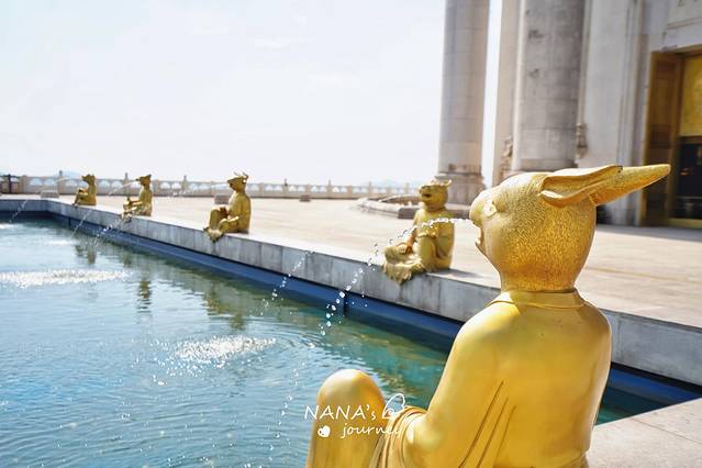 顶上的平台还有十二生肖喷泉,从这里欣赏莲花宝座更是壮观。想来,如果山间腾云驾雾之时,便有了“天宫”之意境。