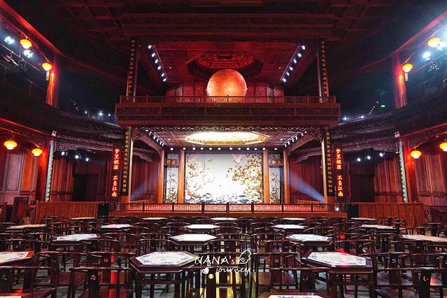 古戏楼里的演出舞台,场面非常大,一定是很多越剧人向往的地方,我们也有幸在这么雍容华贵的地方感受了一回越剧的魅力。