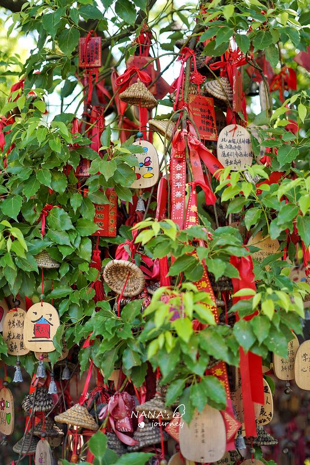 佛像的周围树上,挂满了祈福的许愿牌,随着风的吹过,听到了无数来自心灵的声音。